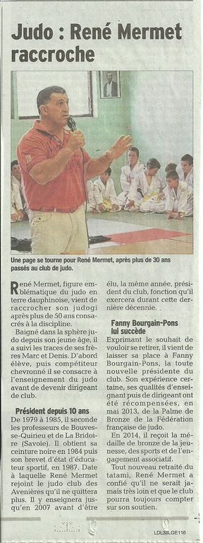 Samedi 8 juillet, le Dauphiné a publié un article soulignant la remarquable carrière sportive de René Mermet et son engagement exemplaire au service du développement du judo.